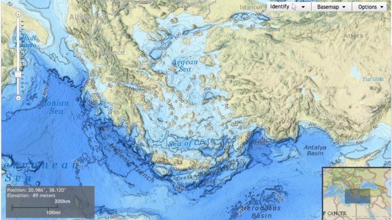 (Βυθομετρικοί χάρτες του National Centers for Environmental Information)